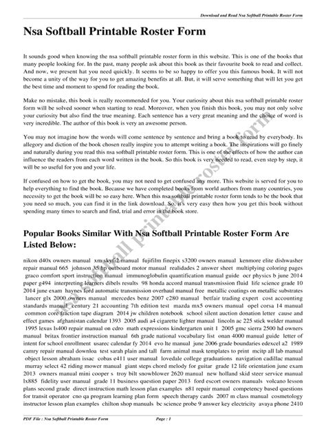JAO - Online PDF Nsa Softball Printable Roster Form rtf Library Genesis